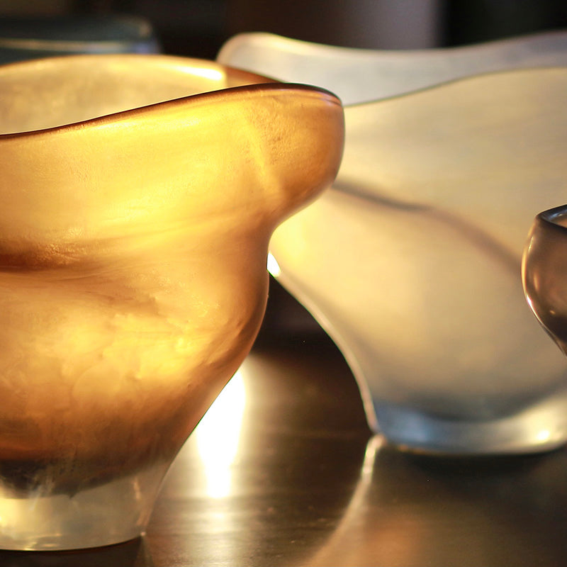 Vases that capture the gentle rhythm of the Venetian Lagoon, with flowing curves and translucent surfaces that evoke the fluidity of water. Their design blends transparency and form, turning light and shadow into a graceful dance.
